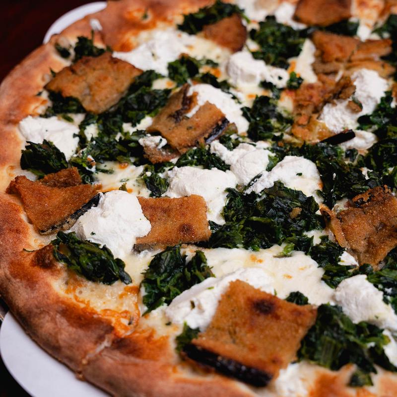 Spinach Eggplant Ricotta Pizza